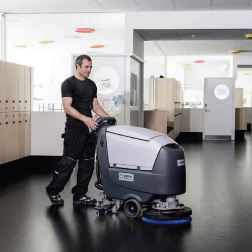 The Nikfisk SC500 walk behind scrubber is a reliable choice for cleaning companies, hospitals, schools, offices, supermarkets, shops, sports centres, restaurants, hotels, and production floors. Productivity is taken to a new level by the automatic adjustment of the water/detergent solution flow according to the speed of the machine. By using this control, which ensures a consistent cleaning result and an optimised consumption of water and chemicals, the operator can focus on getting the job done.