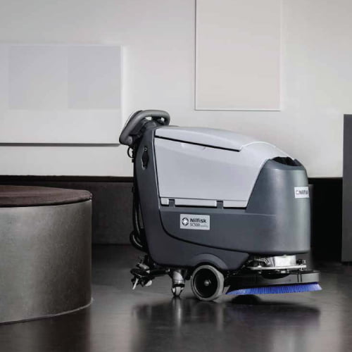 The Nilfisk SC500 walk-behind scrubber dryer is carefully designed to improve productivity and drive down your total cleaning costs. These significant benefits are achieved through more ease-of-use and a series of technical features enabling daytime cleaning and the most effective use of water and detergent.
